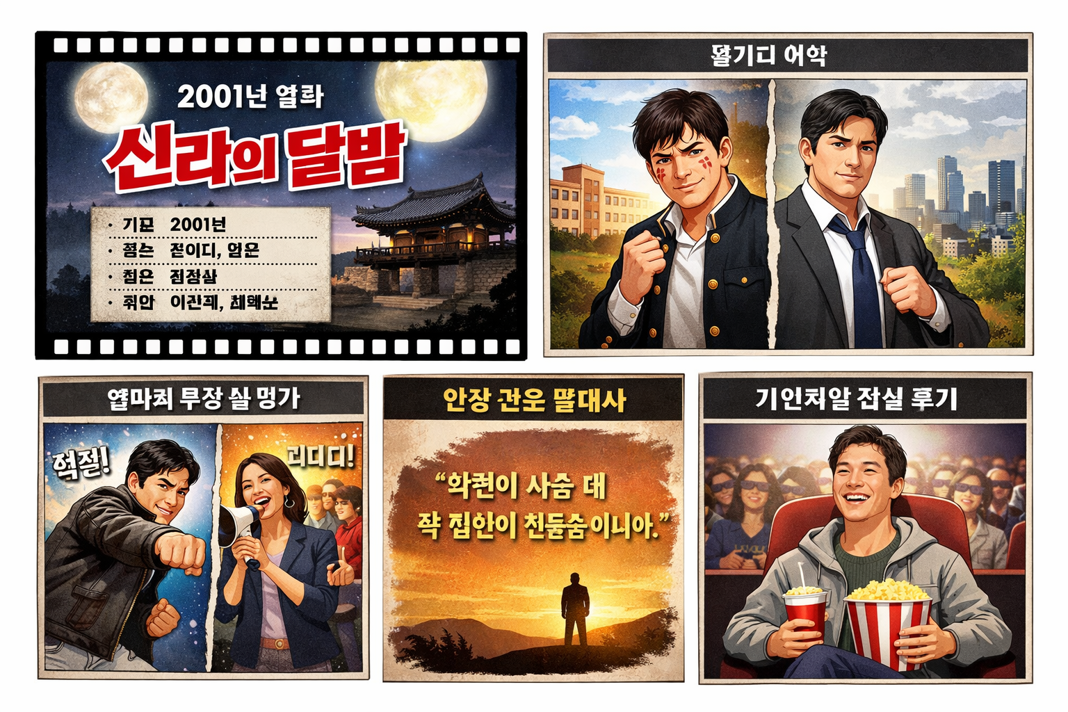 2001년 개봉한 **〈신라의 달밤〉**은 한국형 코미디 액션 영화로, 당시 관객들에게 유쾌한 웃음과 통쾌함을 동시에 선사한 작품이다. 현실적인 캐릭터와 과장된 상황이 절묘하게 어우러진 영화로 평가받는다.